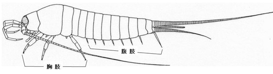 昆虫類は全動物種の75%を占める最も繁栄した動物群です。その99%は馴染みのある翅(はね)を獲得した有翅昆虫類ですが、残りの1% は、翅を獲得する段階には達していない原始的なグループである無翅昆虫類です。無翅昆虫類(カマアシムシ目、トビムシ目、コムシ目、イシノミ目とシミ目からなる)の一群であるイシノミ目(図1)は、陸上に生える緑藻などの気生藻を主食とし、日陰の湿った岩肌や樹皮に生息している体長15㎜程度の昆虫です。水域から陸域に上がってきた昆虫類の祖先は、同時期に陸上に進出した植物である藻類を餌としていたと考えられていることから、イシノミは当時の状況を今にとどめる原始的な昆虫だといえます。さらに、昆虫類の祖先は、胸部の6本肢以外に、腹部にも肢を持っていたと考えられていますが、イシノミは腹部にも肢があるなど昆虫類の祖先型をほうふつとさせる形態学的特徴(図1)を多数持っており、昆虫の進化を考える上でも非常に重要なグループです。