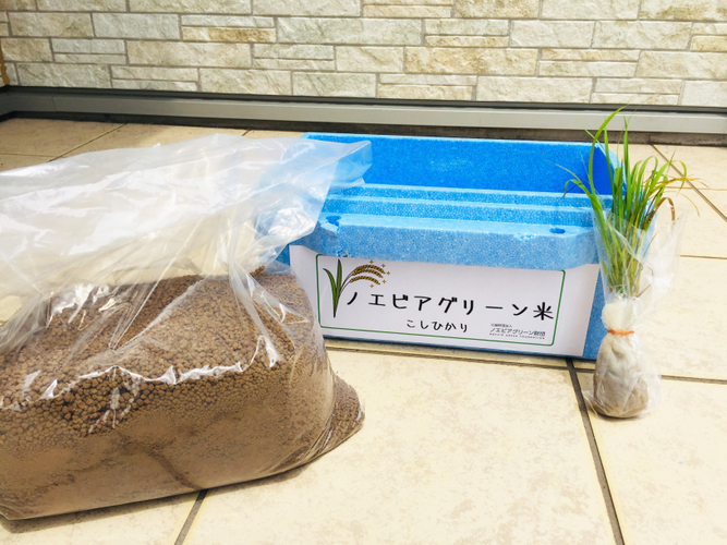 抽選にて当選された方には、「星ふる学校くまの木」の田んぼで育てるノエビアグリーン米と同じ苗が入った“バケツ稲作りセット”をプレゼント。