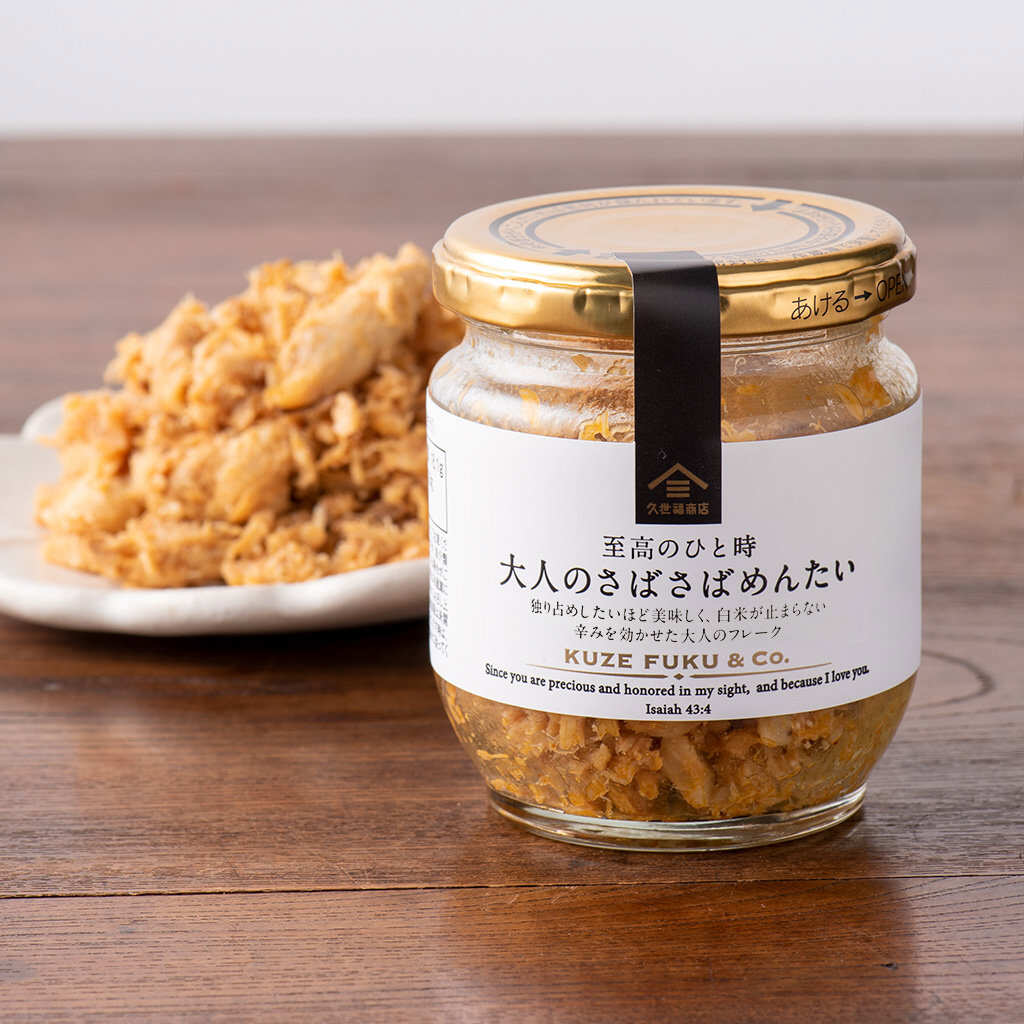 ピリッと旨辛!辛みを効かせた「大人の魚めんたいこ」シリーズも全国の久世福商店店舗(一部店舗を除く)および公式オンラインショップにて好評発売中!鮭やつな、さばを使用した味わい深いごはんのお供も併せてお試しください。