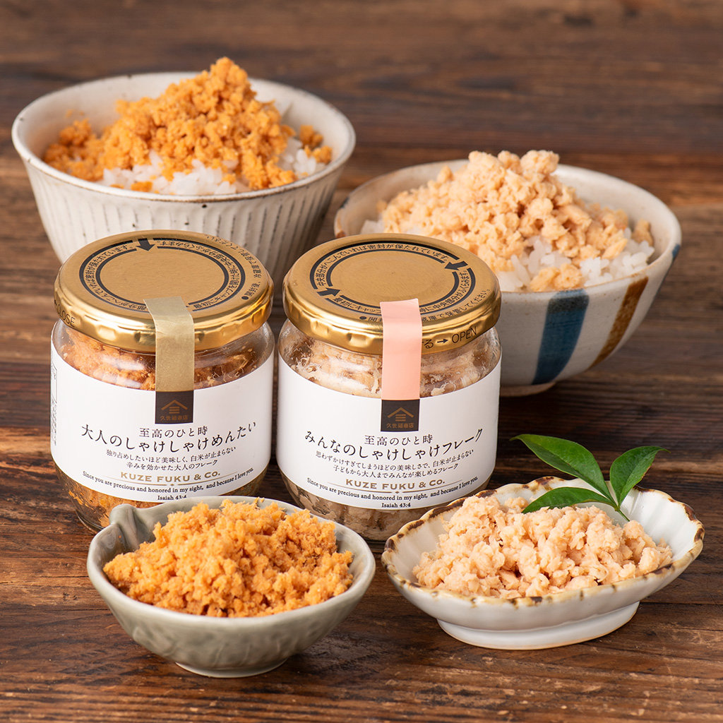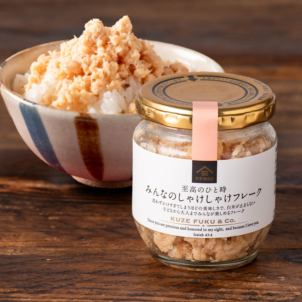 かねてよりお客さまのお声が多かった”辛くない”鮭フレークが新発売!「みんなのしゃけしゃけフレーク」は、久世福商店で人気のごはんのお供「至高のひと時 大人のしゃけしゃけめんたい」のオマージュを受けて開発をした、今までにありそうでなかった王道の鮭フレークです。
