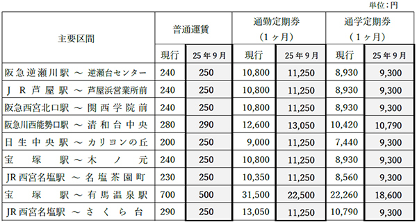 ・定期券は、2025年8月31日まで、改定前の運賃にてご購入いただけます。