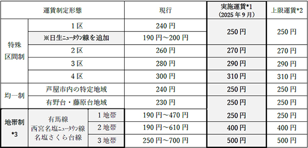 *3 地帯制:特定エリア内を均一運賃とし、エリアを跨ぐごとに加算する運賃制度 (新規設定)