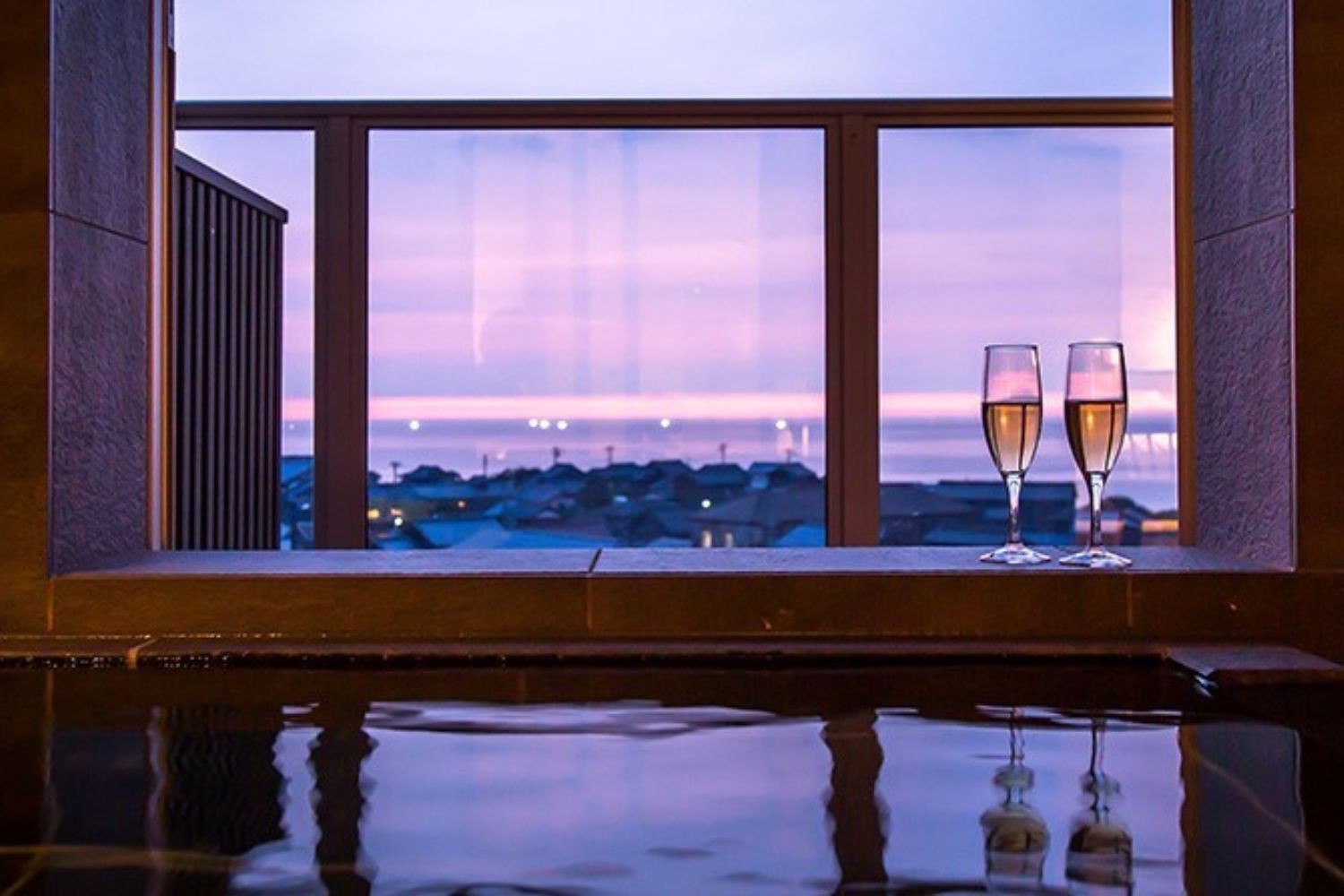 最上階ラウンジで出会う海と夕日の絶景、演出を添えた出来立ての料理、客室で独り占めする豊かな温泉。