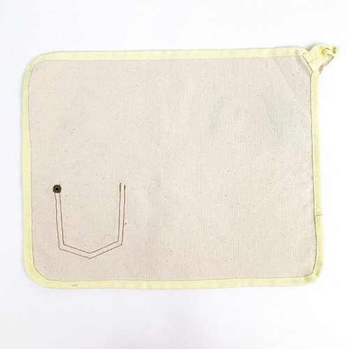 こちらも、アイボリーの綿素材。右下にはポケットもついているので、カトラリーを差し込んだり、チョコやキャンディなどをそっと入れておいたりできちゃいます♪