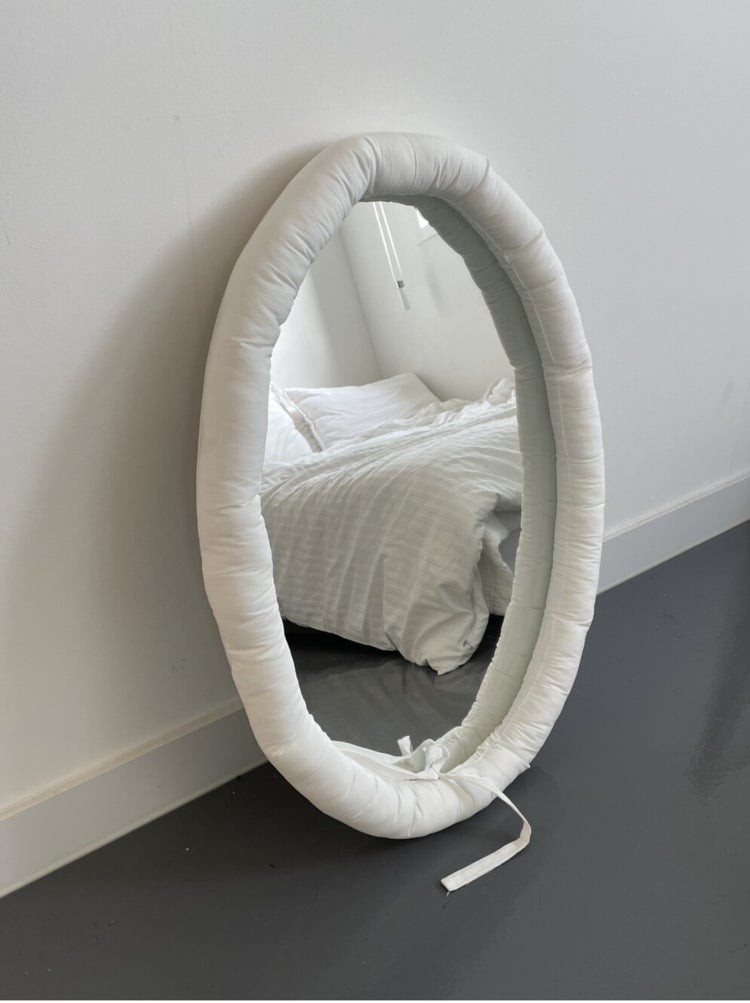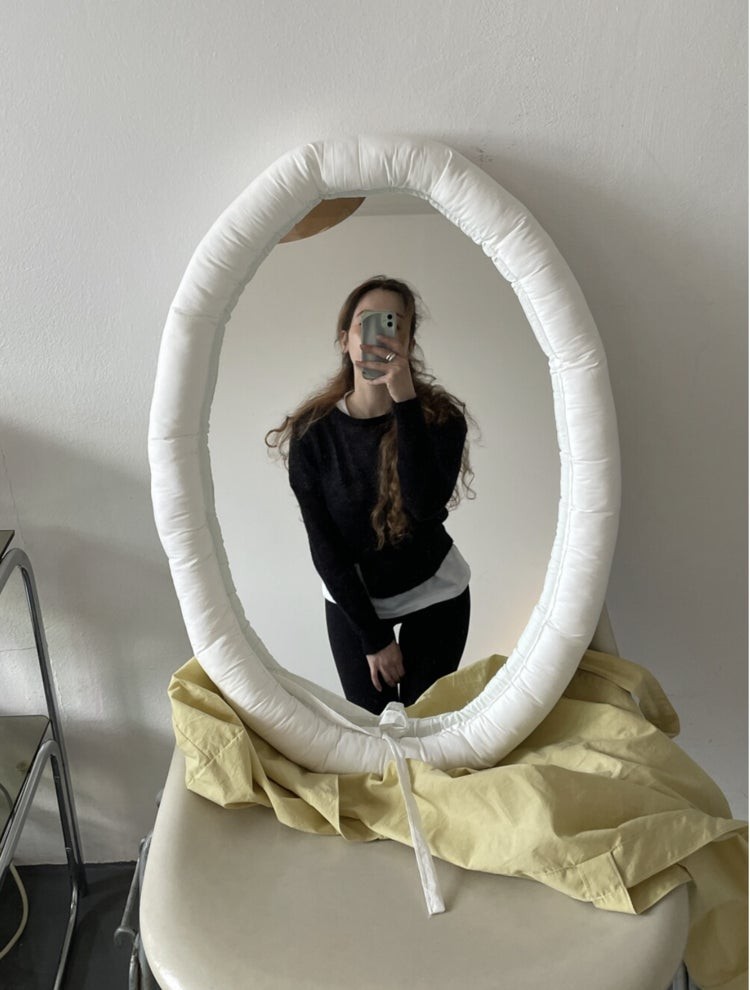 「MIHOMIDU」の代表作である「クッションミラー」は、韓国のSNSで爆発的な人気を誇る新感覚のインテリアアイテム。冷たく硬い鏡の概念を覆し、クッションと組み合わせることで温もりと安心感をプラス。特にベビールームの装飾や妊娠報告、マタニティフォトの撮影小道具として注目を集めています。