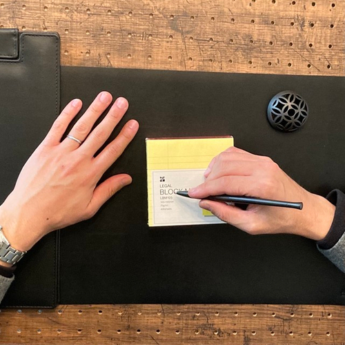 【商品:フロス輪 デスクボールペン(ゼブラ)、レザフェス バインダー(キングジム)、デスクマット(ミワックス)、リーガルブロックメモ(伊東屋)】