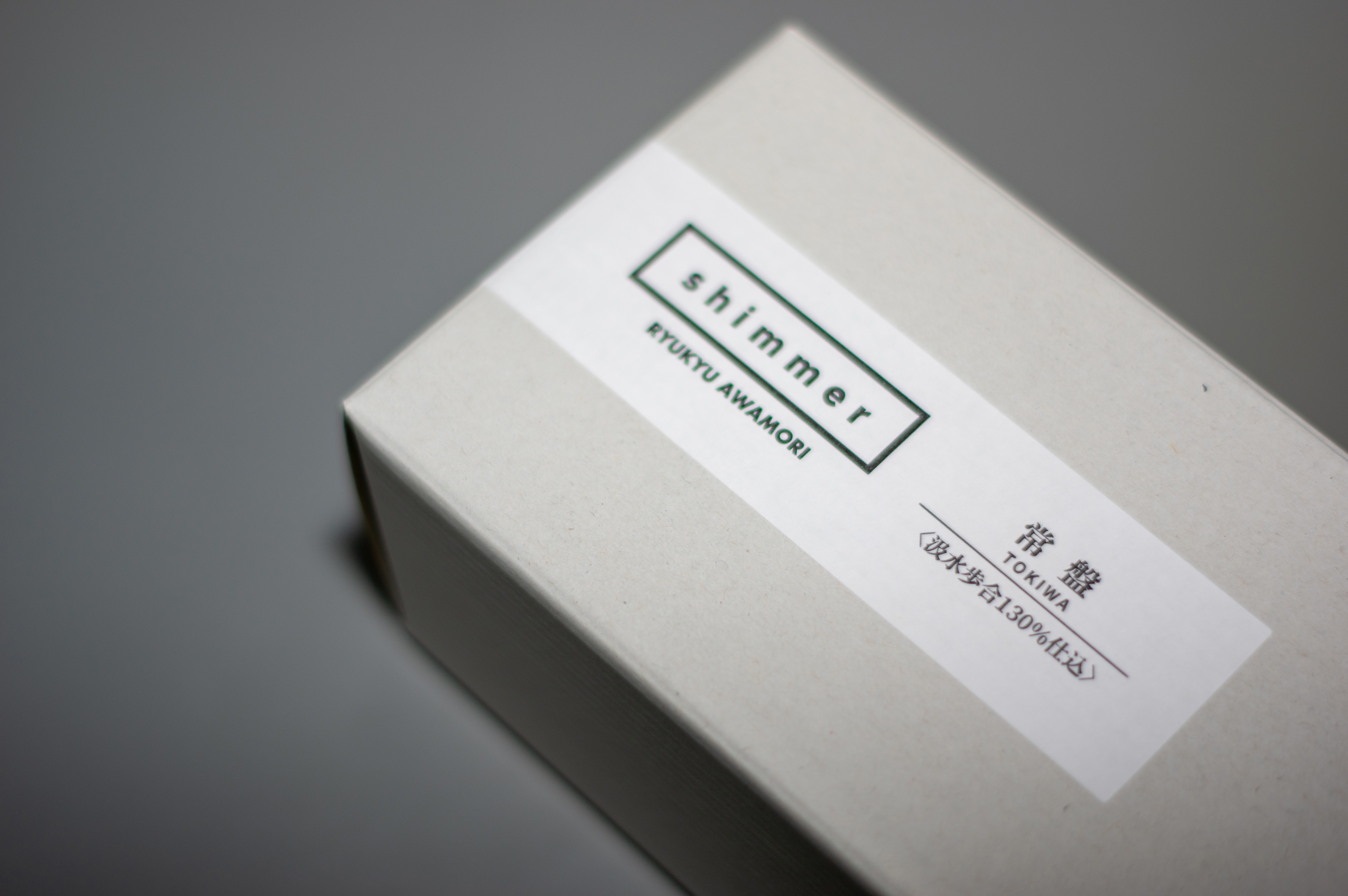 メーカーの実験的な造りの泡盛を全量買取することで、メーカーの挑戦を後押し、泡盛の可能性を拡げることを目的に造られたブランドがshimmerです。そんなshimmerの第一弾として伊是名酒造所の協力を得て開発した「shimmer#1常盤」は泡盛造りでもろみを仕込む際に投入する水(汲水)の量を通常よりも減らし、もろみの濃度を高くした商品となります。この手法は水分量を減らすことで製造量も下がり、また、粘度が上がることでの撹拌の手間や蒸溜時も焦げ付きやすいというデメリットから大量生産をする上では積極的に用いられる手法ではありませんでしたが、新たな泡盛の味わいの模索のため製品化したものとなります。