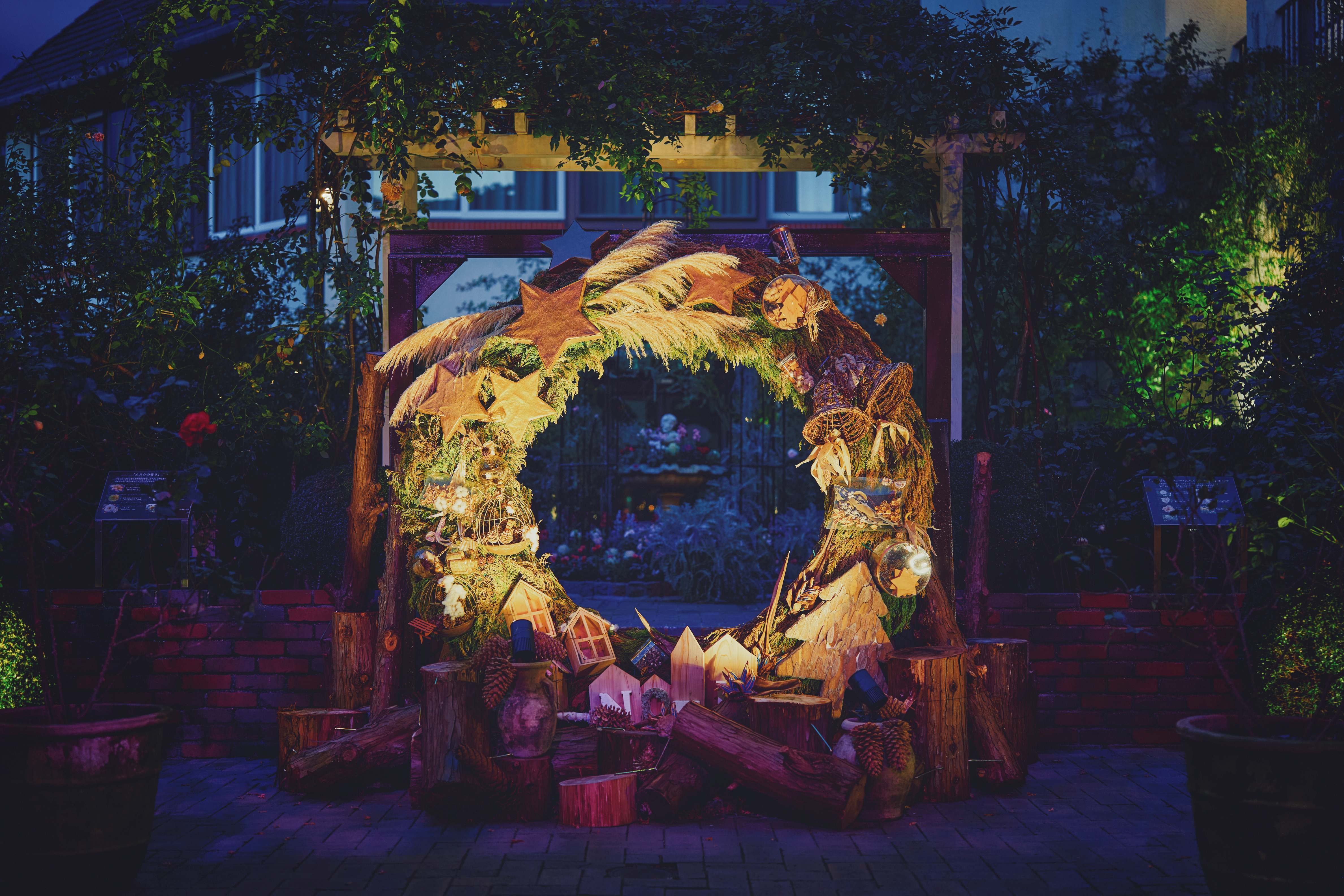標高約400mの古城の広場と広大なハーブ園全体が、クリスマス一色に!園内各所にクリスマスディスプレイやイルミネーションで演出された様々な空間が登場。存分にクリスマス気分を満喫いただけます。ドイツの工芸品や、オーナメント、アドベントカレンダーなどの雑貨を取りそろえた「マーケット」や本場ドイツの醸造所の特製グリューワインや特製ビーフシチューが名物の「ドイツ祭り」など買い物、グルメも充実しています。