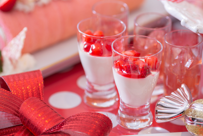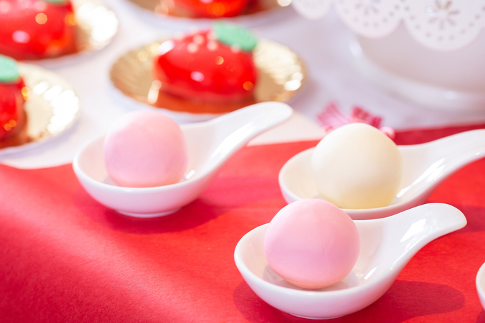 赤と白のカラーがテーマのデザートブッフェを4月まで開催。