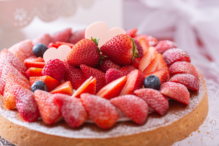 苺タルト/ハート苺ムース/苺のティラミス/こんがりベリーパイ/マフィン2種(苺クリーム・マスカルポーネクリーム)/苺のロールケーキ/ロリポップ2種(チーズケーキ・チョコクッキー)/アイスクリーム2種(バニラ・ストロベリー)/ミルクプリンの苺ソース/ガトーショコラ/ラズベリーマシュマロ/アイシングクッキー/白ワインと苺のジュレ/フライドポテト(Food)