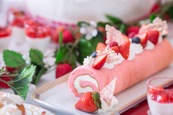 旬のいちごをふんだんに使用した可愛らしいスイーツが並ぶティーパーティー。また、メニュー全て特定原材料7品目(卵、小麦、乳、えび、かに、そば、落花生)を使用しない低アレルゲン対応で構成する2日間限定のランチブッフェイベントも開催。アレルギーをお持ちの方やお子様も気兼ねなくお楽しみいただけるよう専属のシェフ、パティシエが熟考し、華やかに仕上げました。