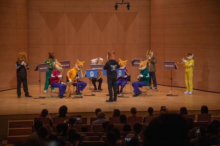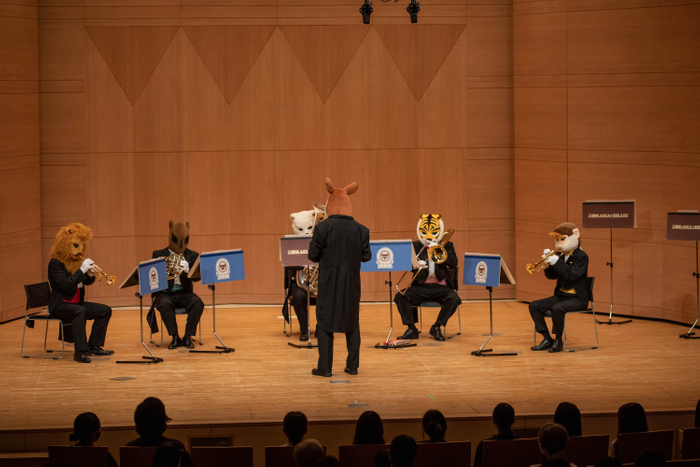 指揮者のオカピをはじめ、演奏するのは全て希少動物という金管五重奏「ズーラシアンブラス」。クラシック音楽における絵本のような役割ができれば…と2000年に誕生しました。2010年には「横浜観光コンベンション特別功労賞」を、2011年には「キッズデザイン賞」において最優秀賞(経済産業大臣賞)を、2023年には「日本管打・吹奏楽アカデミー賞(演奏部門)」を受賞しました。2014年にはコンサートの取組が高く評価され、株式会社スーパーキッズは経済産業省より「がんばる中小企業・小規模事業者300社」に選定されました。また2024年度には高校音楽の教科書に掲載。多数のCD、DVDのみならず、楽譜もリリースし、金管アンサンブル界の裾野を広げています。