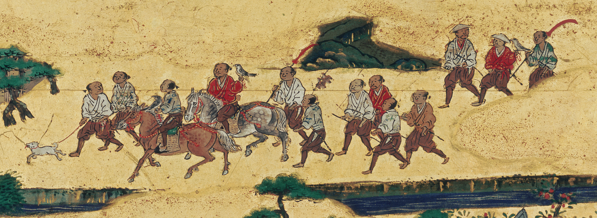 鷹や馬は、大名と室町幕府や豊臣政権、江戸幕府との関係のほか、大名同士の関係においても重要な役割を果たしました。鷹狩は広く武家が愛好し、乗馬は移動や戦いで武家に必要とされました。本展では、戦国時代から江戸時代における上杉氏を中心とした武家権力と鷹と馬との関わりをみていきます。また、展示内で国宝「上杉本洛中洛外図屏風」の原本も展示します。