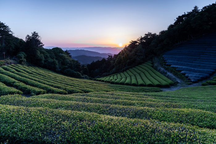 かつて、俗世の喧騒を背にし修行の地として山々へと向かった僧侶たちのように、茶の木もまた聖なる地を求めたのだろうか。由緒正しい寺院が点在する「山城」は、山岳修験の拠点として、自然の美しさと厳しさを併せ持つ静謐な場所。土地の気質である寒暖差、水捌け、そして木津川の川霧、これらが宇治茶の生育に寄与し、その結晶として優雅な風味が生まれたのです。