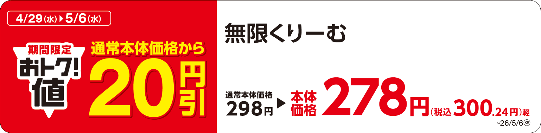 ●クーポン内容:本体価格より20円引き
