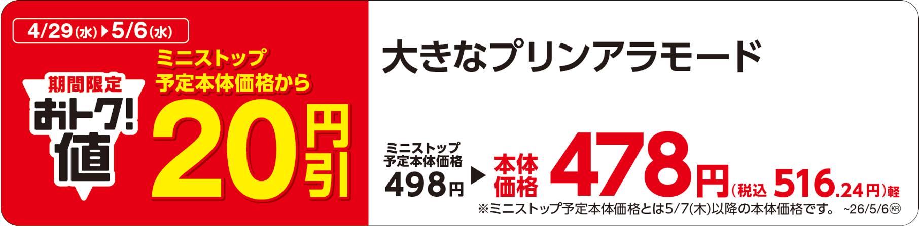 【対象のチルドスイーツ本体価格から20円引】※1 対象地区:全国 (2026年3月末現在:1,755店)