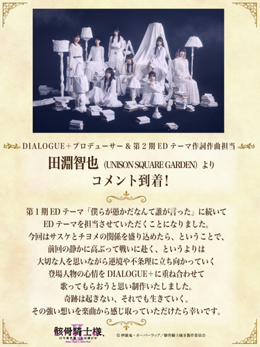 ■EDテーマアーティストはDIALOGUE+に決定!作詞作曲も担当のDIALOGUE+プロデューサー・田淵智也(UNISON SQUARE GARDEN)よりコメントも到着!