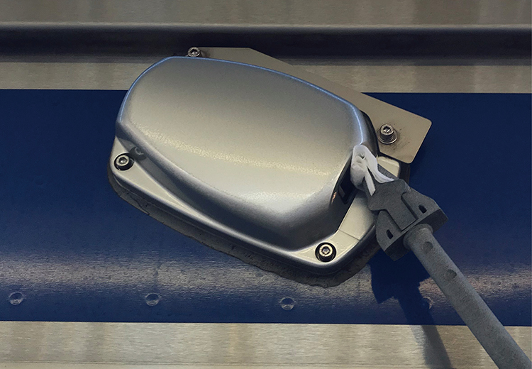 運転士は、運転台に設置されたモニターで車両側面に設置された車側カメラにより撮影される扉前の映像で乗降状況の確認をします。高所にあるカメラレンズ部に虫等の汚れが付着し、映像が確認出来ない場合、迅速に対応出来る清掃用具が必要となったことから本商品の開発となりました。