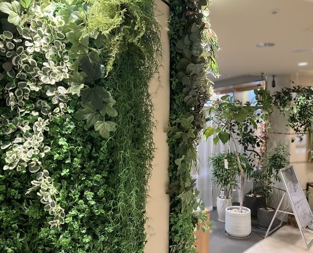 この装飾により、訪れる人々にとって「心からくつろげる場所」へと進化しました。視覚的な美しさだけでなく、心理的な安心感も提供できる空間デザインが、より質の高い癒しを生み出します。これからも、グリーンとデザインの力を活かし、空間づくりを提案していきます。