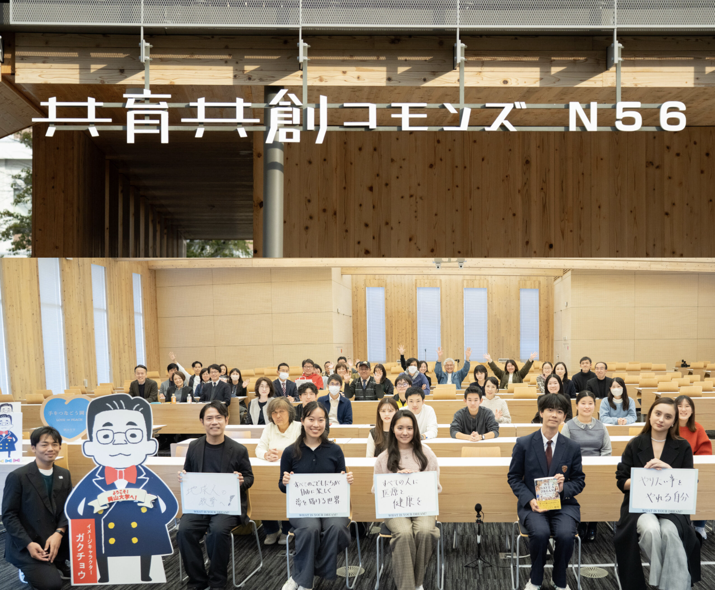 公開された映像では、トークショーの熱気はもちろん、石田ニコルさんが岡山大学のキャンパスを歩き、学生たちの学ぶ環境や展示に触れている様子も収録されています。