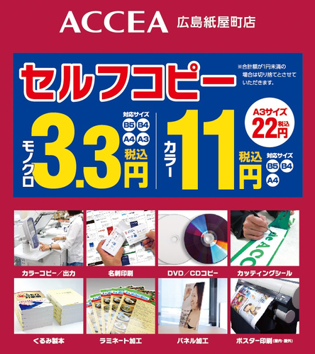 ・セルフコピー カラーA3 33円→22円/面