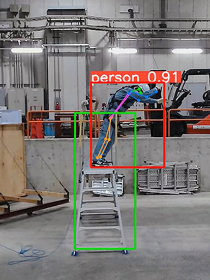 そこで、AI画像解析技術を用いて、建設現場に設置されている監視カメラの映像に映り込む作業員の危険行動を検出し、検出した危険行動を作業員本人に知らせることで、日々の危険行動を自身で確認することができる本システムを開発しました。