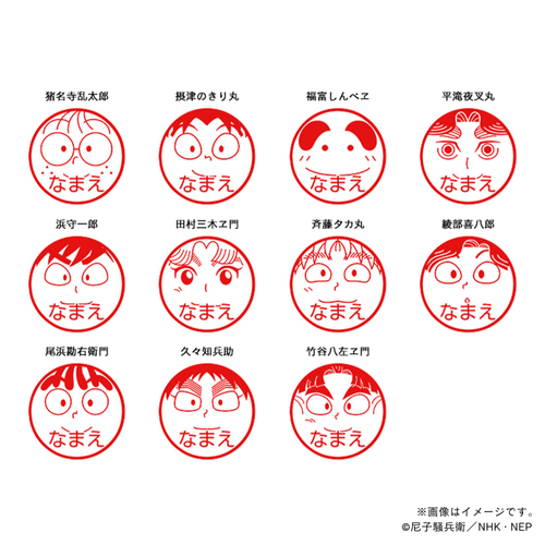 痛印に続き、復活ラインナップを果たすのは、全22種のネーム印です。キャップデザインがTVアニメ『忍たま乱太郎』ロゴでリニューアルしたバージョンとなっております。最大3文字までの文字をお好きに彫刻いただけます。お仕事でも簡単な書類にもポンポン捺して頂けるネーム印。お好きなキャラクターで揃えましょう。