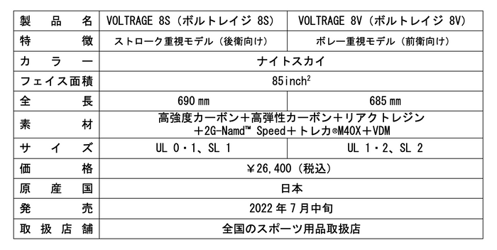 プロソフトテニスプレーヤー船水颯人と共同開発 シリーズ最速スピードと精密なコントロールを実現する上級者向けラケット「VOLTRAGE(ボルトレイジ)8S/8V」シリーズ 2022年7月中旬より発売