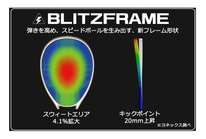 本シリーズは、弾き性能を高め、スピードボールを生み出すフレーム形状「BLITZFRAME(ブリッツフレーム)」とグロメット構造「RAYBURST SYSTEM(レイバーストシステム)」(特許出願中)を共通テクノロジーとして搭載しています。