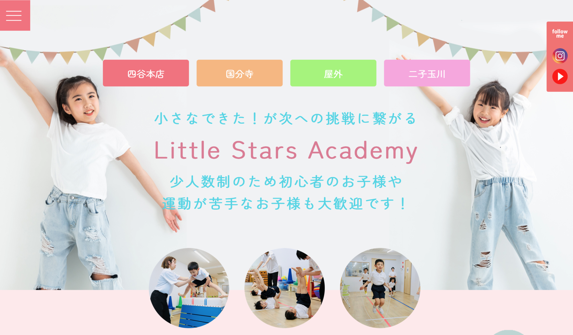 リトルスターアカデミー様は、東京都の四谷・国分寺・二子玉川に3教室を構える、幼児〜小学生を対象とした体操教室です。