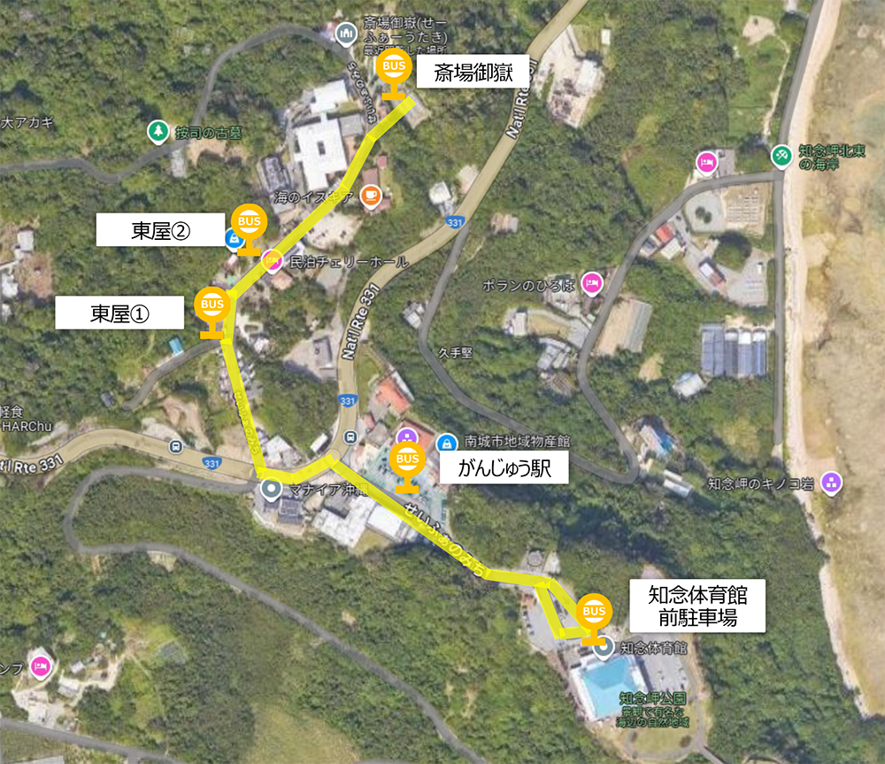 沖縄県南城市(知念体育館前駐車場~がんじゅう駅~斎場御嶽駐車場間を走行、図1)