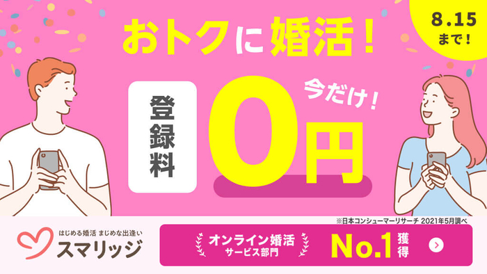 婚活支援サービス「スマリッジ」が登録料無料と 3周年記念特典付きキャンペーンを開催