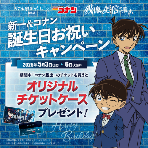 さらに、新一&コナンの誕生日である5月4日をお祝いして「新一&コナン 誕生日お祝いキャンペーン」も開催! 2025年5月3日(土祝)から5月6日(火振休)にチケットを購入した方全員に、会場でオリジナルチケットケースをプレゼントいたします。期間限定のキャンペーンとなりますので、少しでも気になる方はぜひこの期間にチケットをお買い求めください。