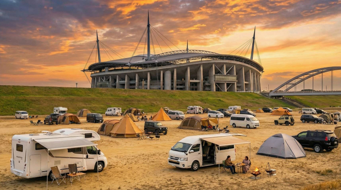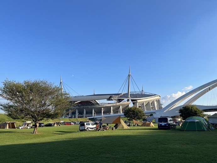 4. 周辺施設との連携 隣接する豊田スタジアム内の「スポーツプラザ(屋内プール・シャワー)」が利用可能であり、都市型キャンプならではの利便性を備えています。