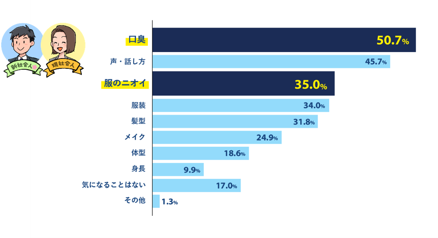 24年卒“コロナネイティブ世代”が新社会人に! 90%以上が対面時に気になることは「ニオイ」と回答 新生活シーズンを連想させる色は、やっぱり白!