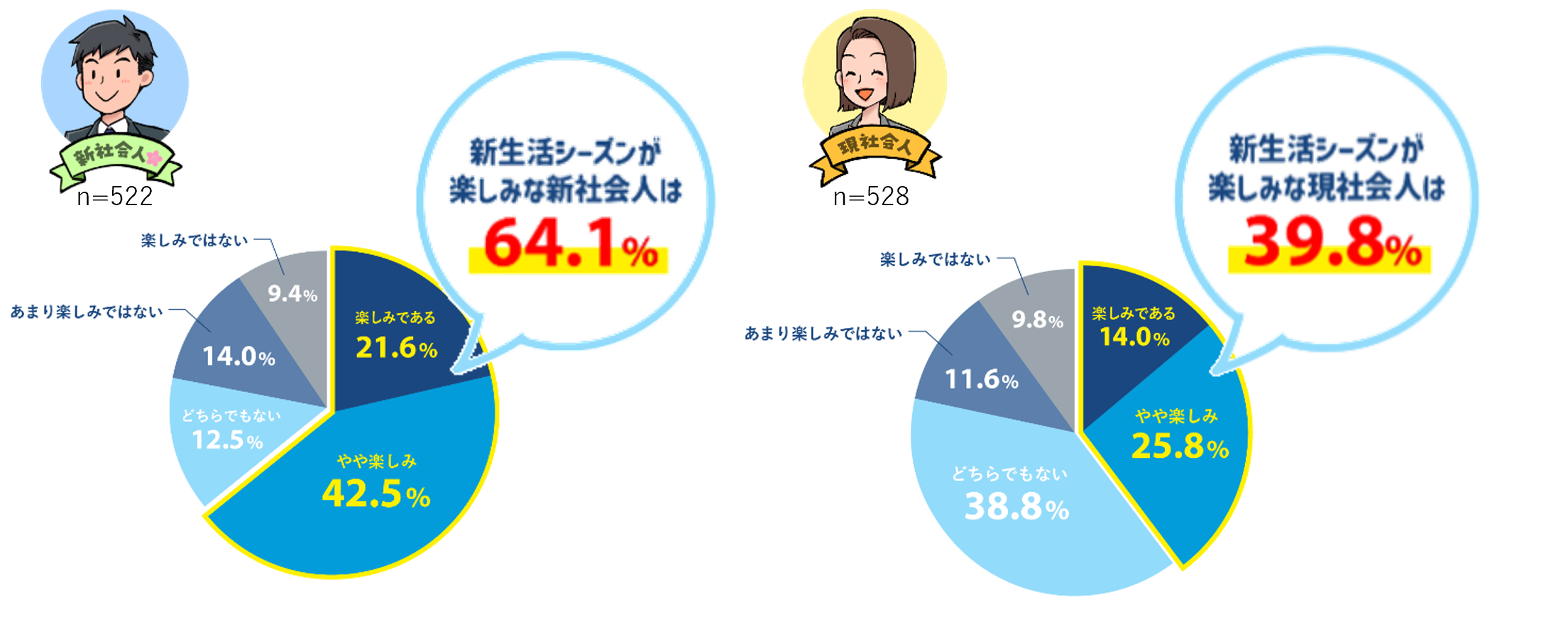 ・新社会人の64.1%が、社会人になる「4月が楽しみ」一方で現社会人は39.8%にとどまる