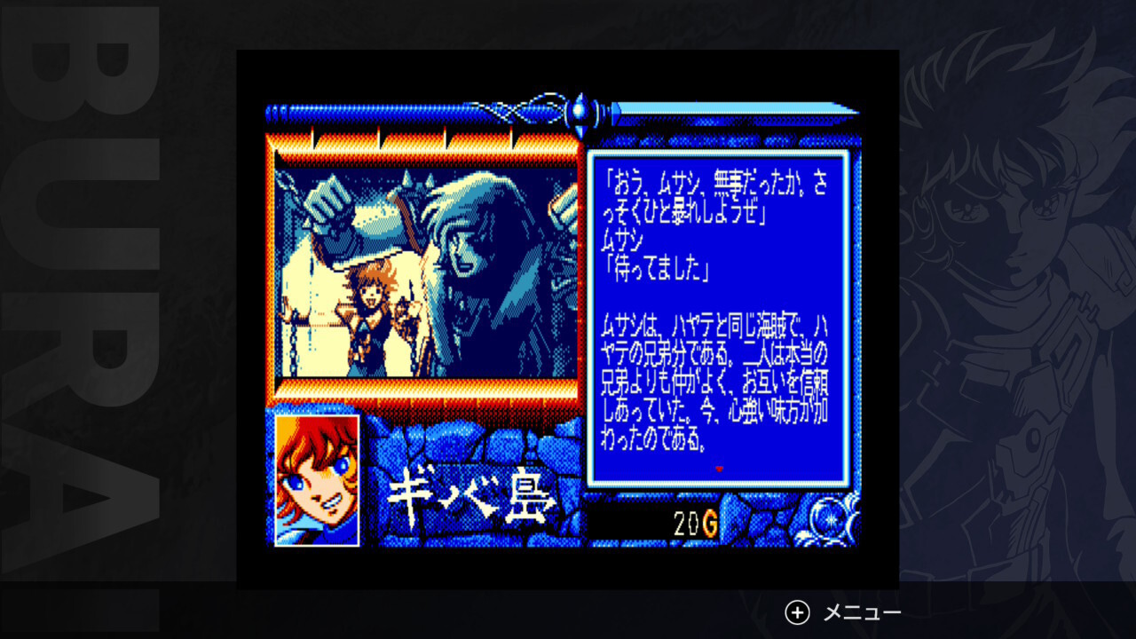 「BURAI 上巻」「BURAI 完結編」はリバーヒルソフトが当時としては異例の有名スタッフが制作に参加したビッグプロジェクトのRPGです。惑星キプロスを舞台に光の玉に選ばれた8人の主人公たちが集結し、闇の勢力と戦う。当時のキャッチコピー「敵は二億四千万、挑むは八匹の狼たち!!」はゲームの壮大さを伝えるには十分な内容でした。本パッケージでは上巻、下巻にあたる完結編をノンストップでお楽しみいただけます。