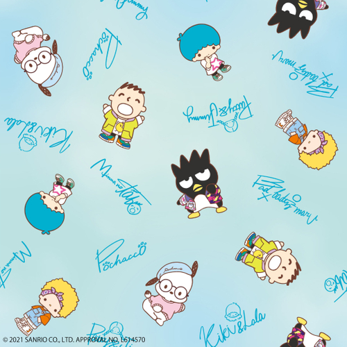 今回は商品化に向けて、「イッツデモ」セレクトのGirlsグループ&Boysグループを結成。ピンクベースのキュートなGirlsグループは、「リトルツインスターズ」のララ、「クロミ」、「マイメロディ」、「ハローキティ」、「パティ&ジミー」のパティ。ブルーベースのクールなBoysグループは、「リトルツインスターズ」のキキ、「バッドばつ丸」、「みんなのたあ坊」、「ポチャッコ」、「パティ&ジミー」のジミー。大胆なファッションに身を包んだキャラクターと、サイン風のロゴが散りばめられたオリジナルの柄は、今回のコラボならではのエモーショナルな仕上がりとなりました。