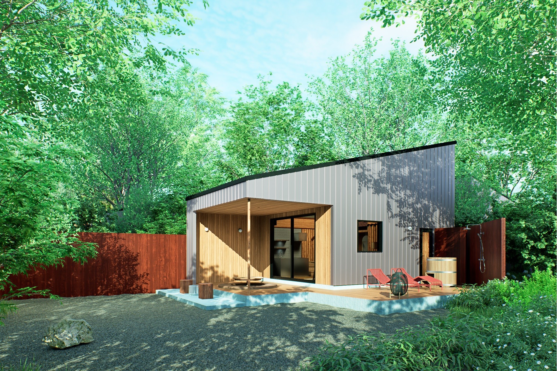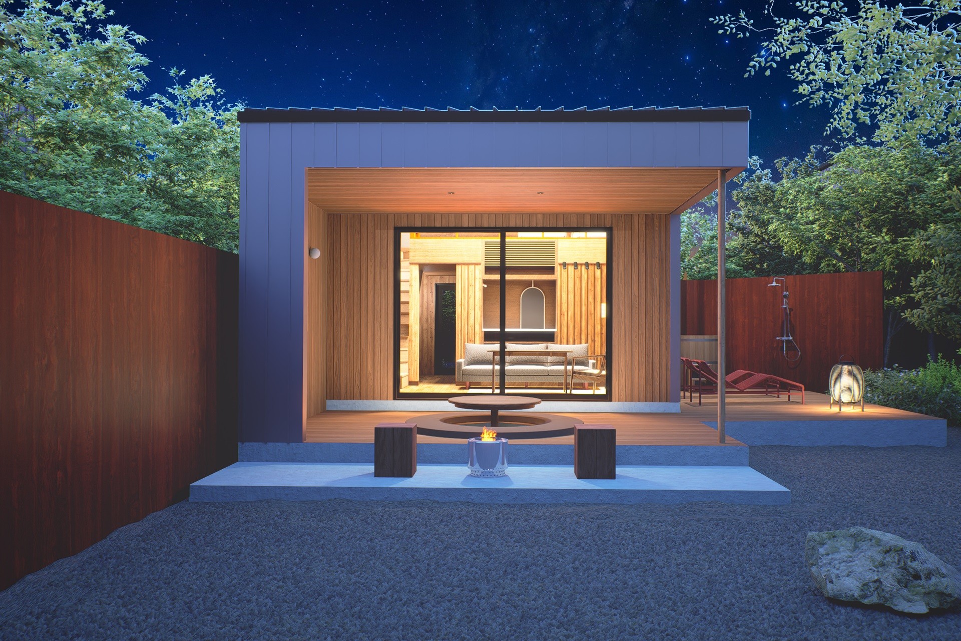 全5棟がサウナ・露天風呂付き、うち3棟はドッグフレンドリー対応で各棟にはテラスとプライベートガーデンが付いており、BBQや焚火をお愉しみいただけます。
