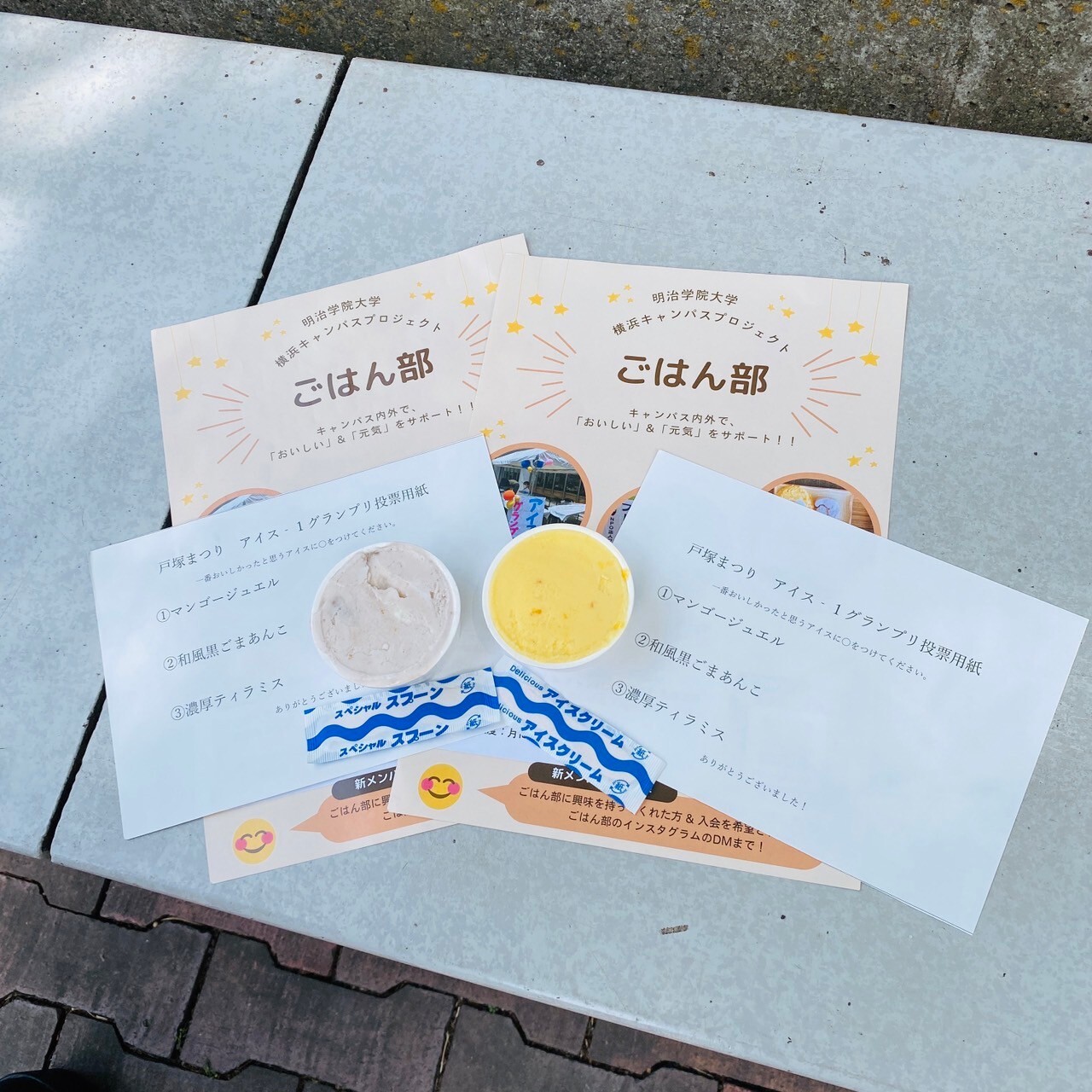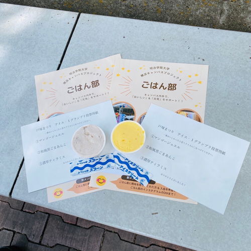 横濱アイス工房( https://www.yokohama-onofarm.com/yokohama-ice/ )の全面協力のもと、戸塚まつり準備会や、明治学院大学「ごはん部」の学生が、戸塚まつりでしか味わえない明治学院大学オリジナルフレーバーを提案し、戸塚まつり当日に人気投票を行う企画。