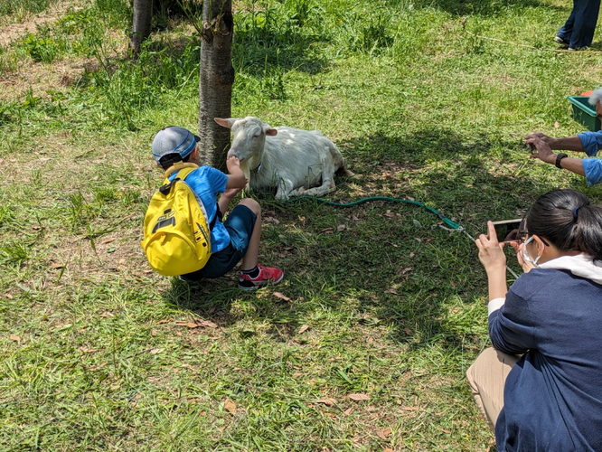 普段横浜キャンパスをエコに除草してくれている2頭のヤギ(ホイップと茶々丸)に加え、仔ヤギたちと触れ合える大人気イベントです。