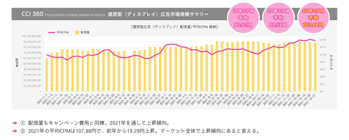 2021年全体のCPM平均は107.88円と、前年比121.8%上昇した。