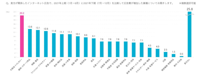 アンケート結果によると、キャンペーン費が最も増加した業種は「化粧品・トイレタリー」だった。