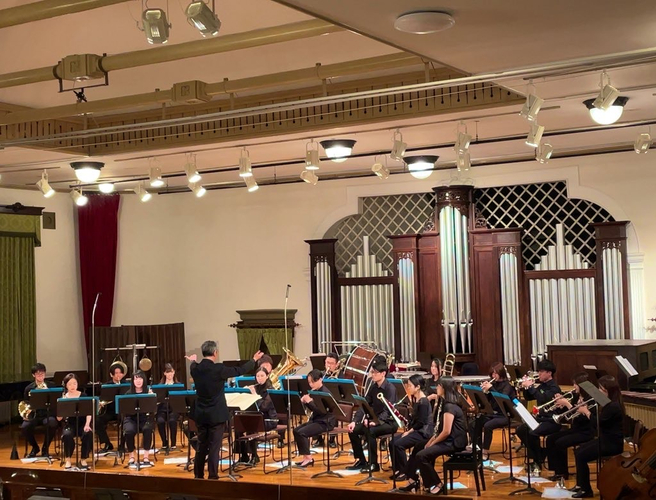 今回で7回目を迎える定期演奏会は「日仏作曲家ー管打合奏の競演ー」と題したプログラムを展開。