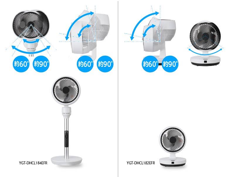 高さのあるスタンドタイプは60°と90°の左右・上下自動首振付き。