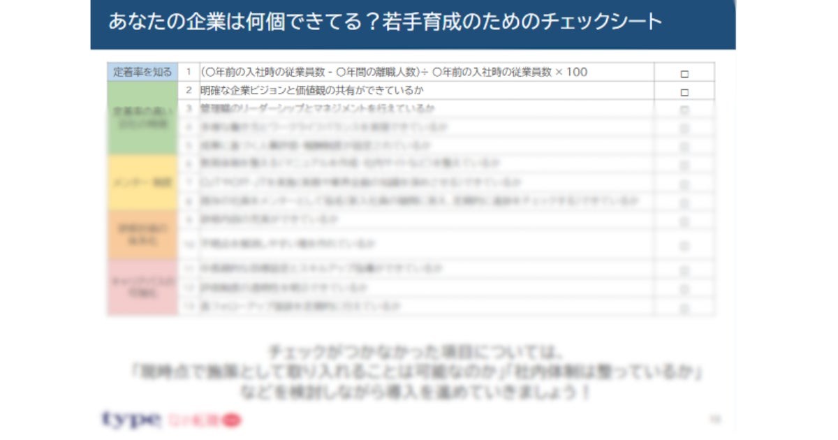 【チェックリスト13選】定着率UP!若手育成プログラムまとめ/転職サイト『type』『女の転職type』