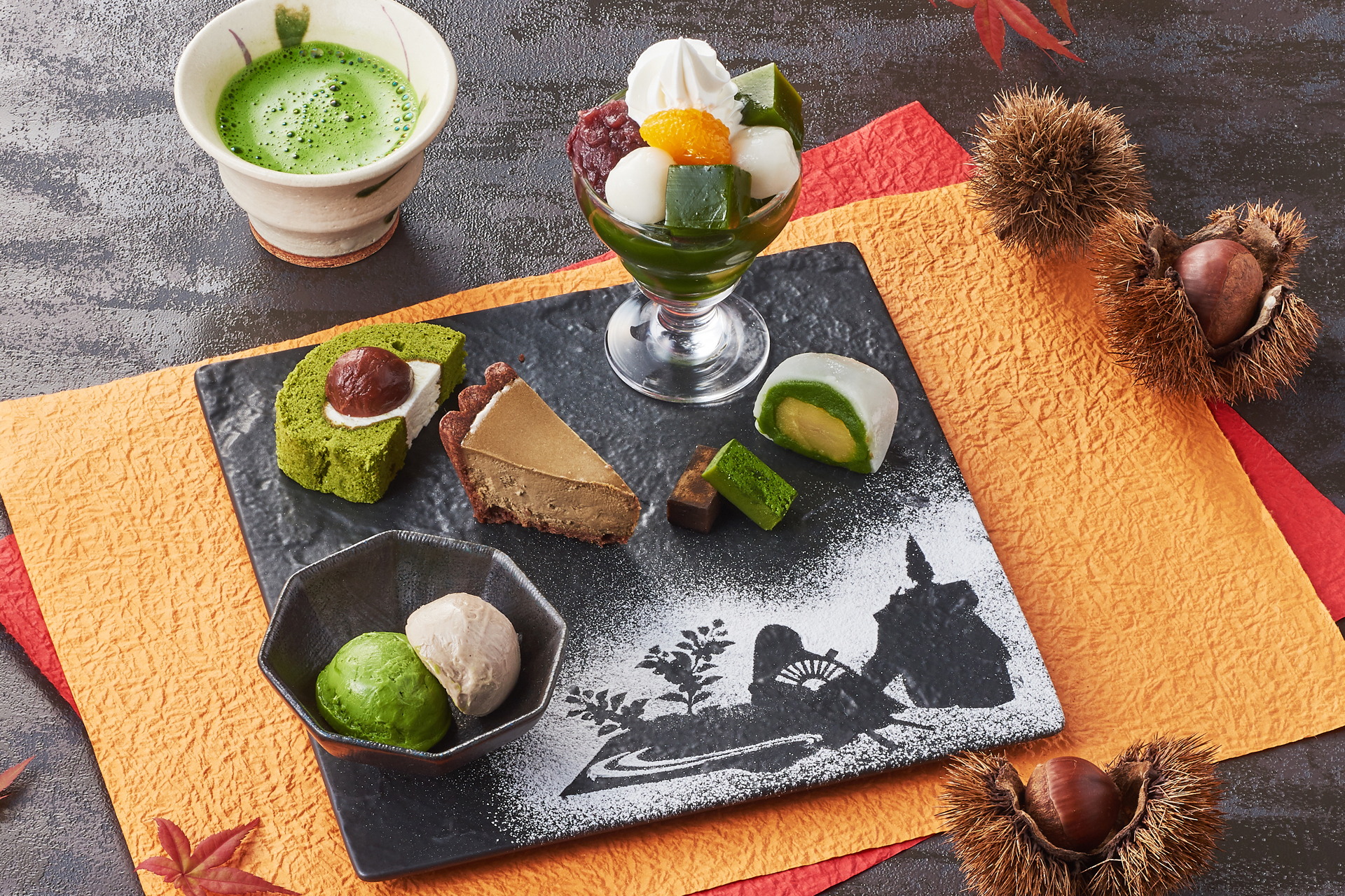 京都・伊藤久右衛門「抹茶モンブランパフェ」 「源氏物語 栗スイーツプレート」9/17より提供開始