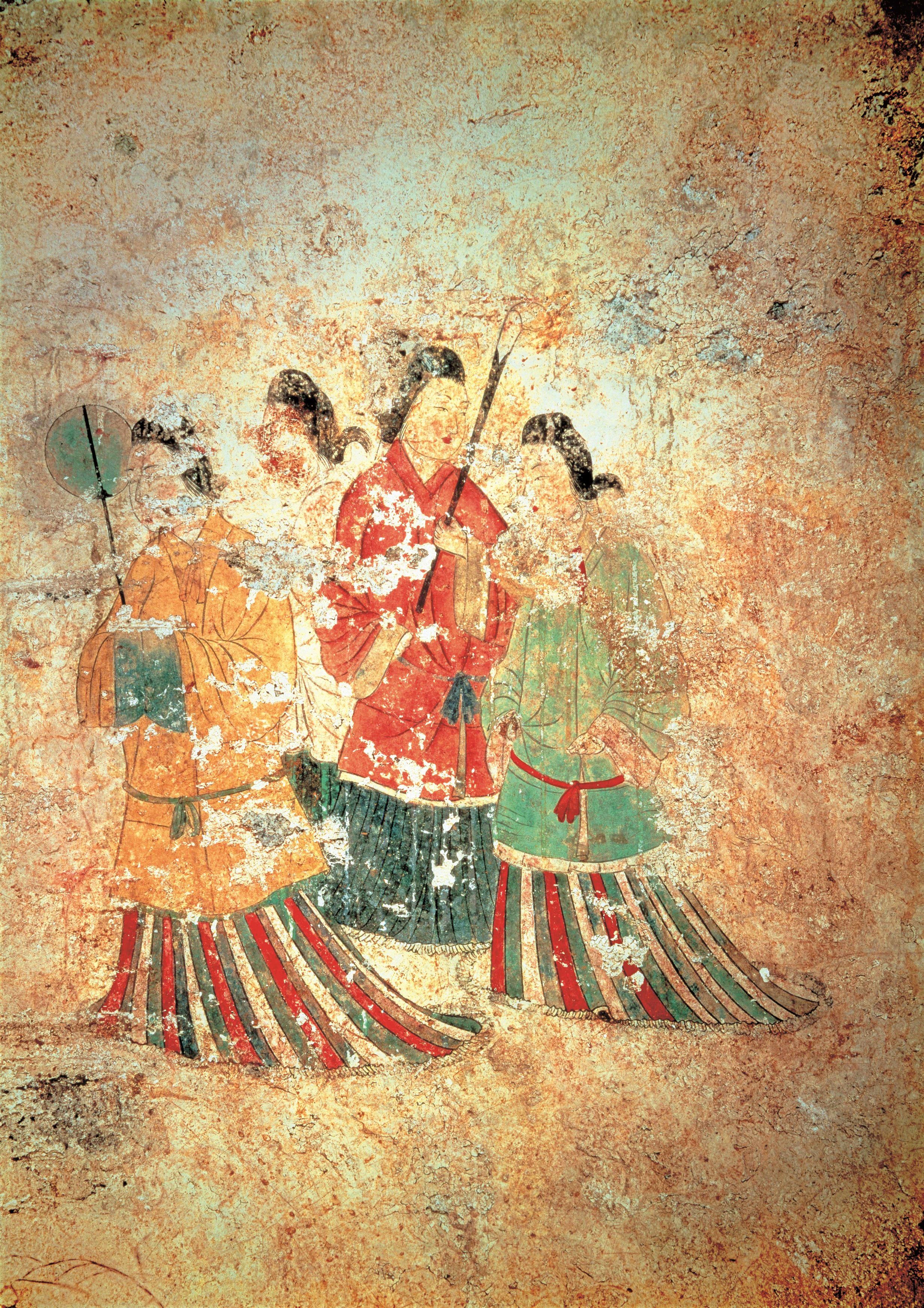 ▲高松塚古墳西壁女子群像(レプリカ)