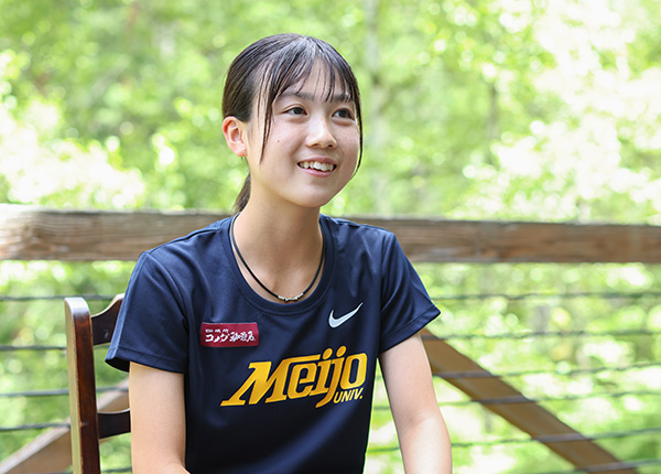 瀬木彩花選手は「ひたすらついていっているような感じです。けがをしないように頑張りすぎないでコツコツやっています」と話す。「練習での距離を増やしたり、他の1年生が走る本数を追加していたら自分ももう1本走ったりするようになってきました」と身体が馴染んできている。6月4日のU20日本選手権3000mで2位(9分22秒76)。「全国大会で初めてメダルが獲得できたので素直にうれしかった」と笑顔を見せた。