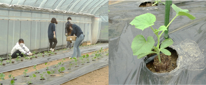 近大農学部生が環境に配慮したメロンのアースストレート苗を定植 SDGsの重要性を学ぶとともに、農作業の負担軽減を実体験